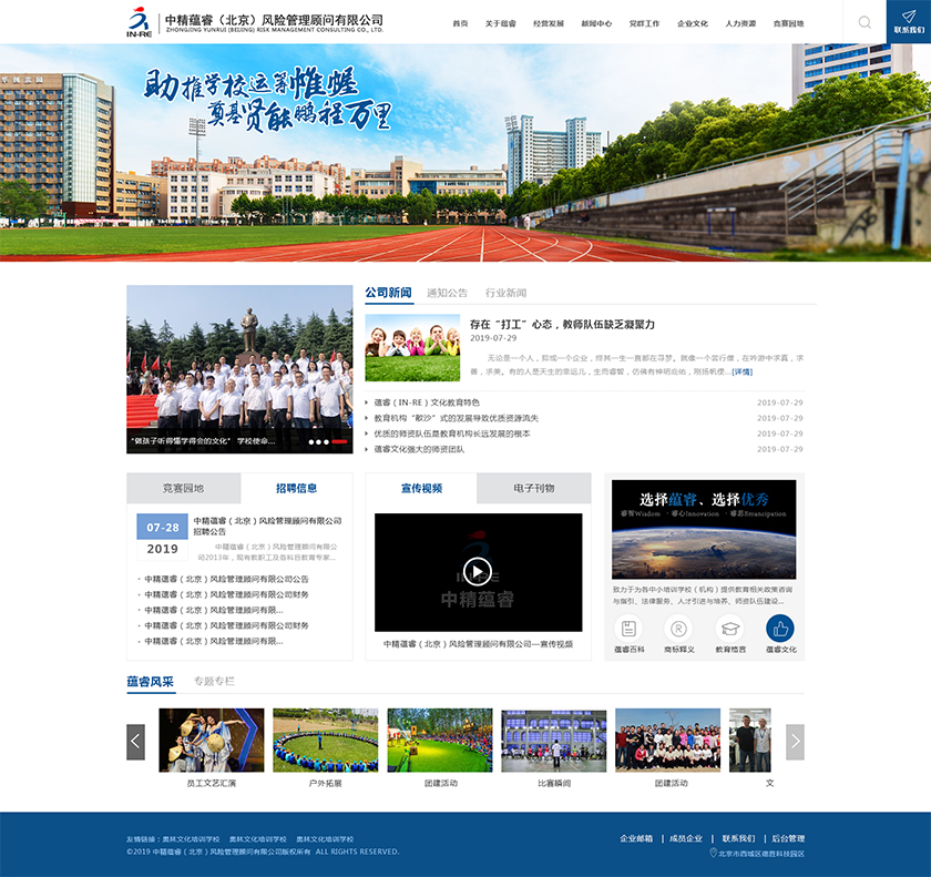 Project Description 中精蕴睿(北京)风险管理顾问有限公司2013年,现有教职工及各科目教育专家80多人,致力于为各中小培训学校(机构) 提供教育相关政策咨询与指引、法律服务、人才引进与培养、师资队伍建设与培训、教学教研与学科创新、市场营销企划、文化 理念塑造与品牌输出的专业化教育管理全方位的综合服务。 Official website address 南阳http://in-re.com/ I want to share